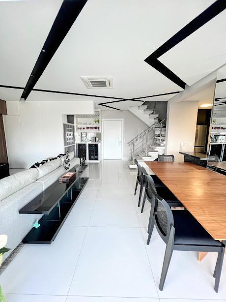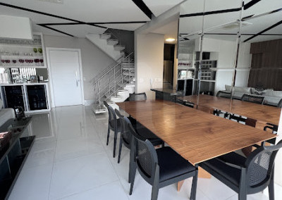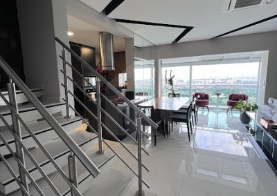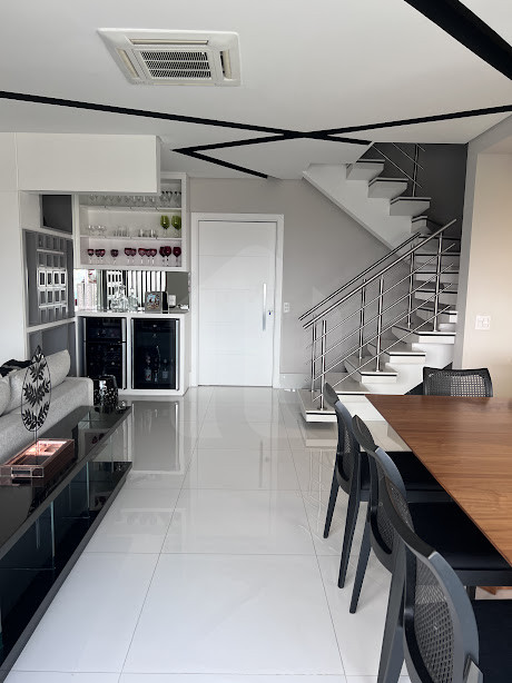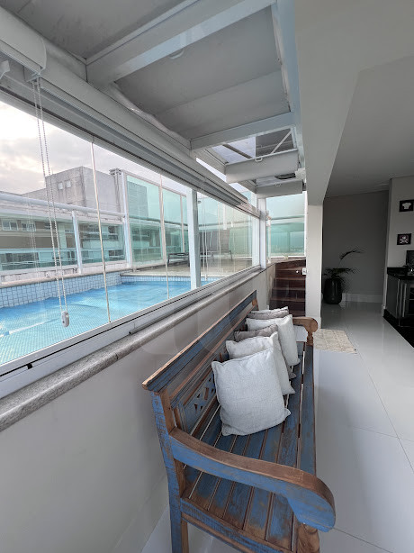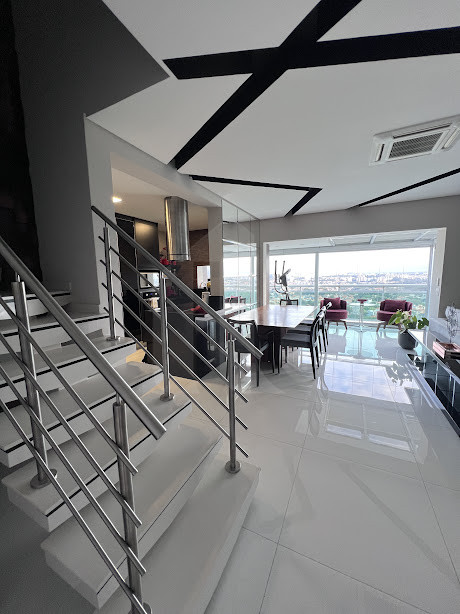 Cobertura duplex de 238m² com 3 suítes, 4 banheiros, banheira, sacada gourmet, churrasqueira. Armários planejados já instalados em todo o apartamento. Ar condicionado.