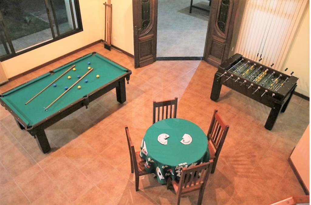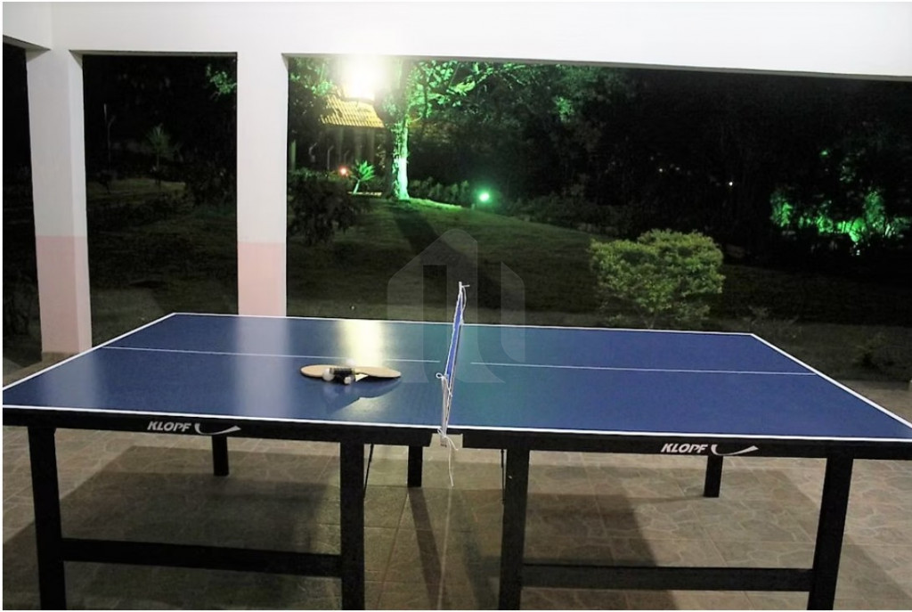 Área externa com inúmeras vagas de garagem, portão automático, terreno totalmente cercado, com churrasqueira, amplo espaço aberto, campo de futebol e piscina. Possui 01 cisterna.