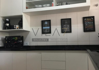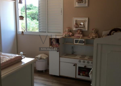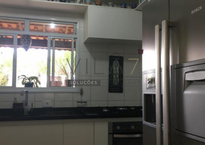 Segundo pavimento: 3 amplos dormitórios, incluindo 1 suíte com armários planejados, banheiro social completo atendendo os outros dois quartos. Infraestrutura do condomínio: segurança 24 horas, monitoramento e interfone.