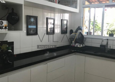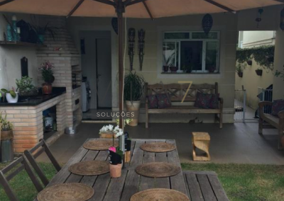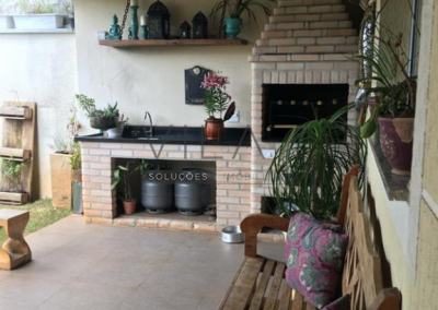 Primeiro pavimento: sala de estar e jantar, cozinha planejada, lavabo prático e quintal espaçoso com churrasqueira coberta. Garagem para 2 carros.