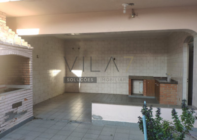O espaço gourmet dos fundos tem churrasqueira, pia com torneira.