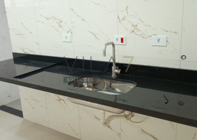 - - Cozinha grande com pia de 2,5 m preto São Gabriel, torneira monocomando.