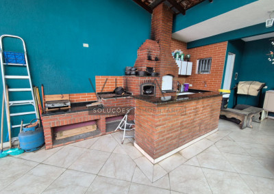 - Parte de cima ampla com área de lazer já com churrasqueira, forno de pizza, fogão a lenha, tudo bem tijolinho à vista, um charme, este espaço já tem um banheiro