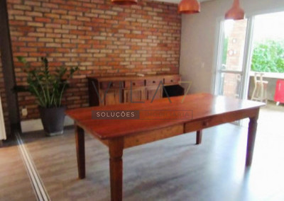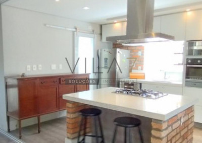 - Acabamentos e equipamentos de marcas de alto padrão, incluindo geladeira, cooktop, coifa, exaustor de teto, forno, micro-ondas, lava-louça, TV, ar condicionado, máquina lava e seca, mesa de jantar e armários planejados em todos os cômodos.