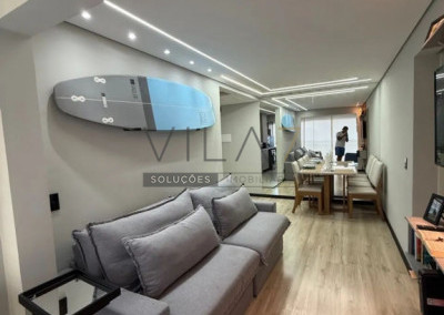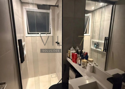 - Envidraçamento na sacada, persiana, cozinha planejada com vidro reflecta, box do banheiro até o teto, painel ripado na sala, guarda roupas no quarto, completo