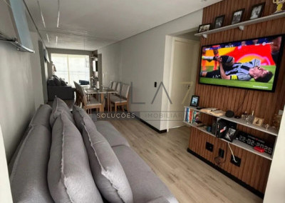 - Apartamento bem distribuído, com 52m², 2 dormitórios, sala ampla conjugada com a varanda, cozinha, banheiro e 1 vaga de garagem