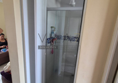 - 2 banheiros, sendo 1 deles completo com área de banho, porta sanfonada em alumínio