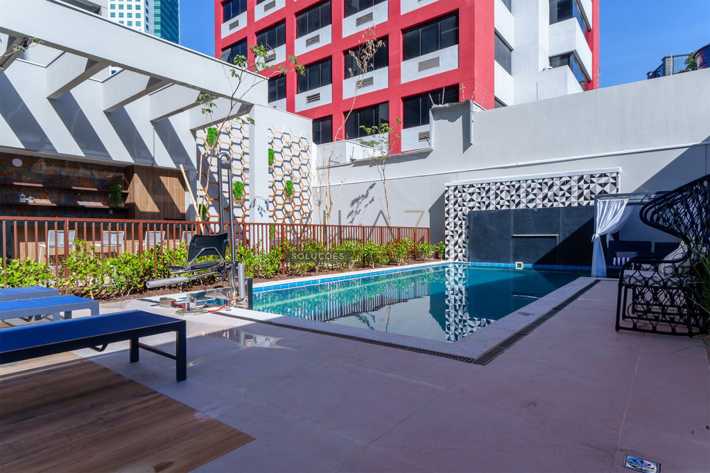 Rooftop com Piscina: Um refúgio urbano com vista panorâmica para a cidade.