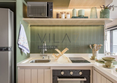 - Cozinha Planejada e Equipada: Geladeira, micro-ondas, cooktop e forno.