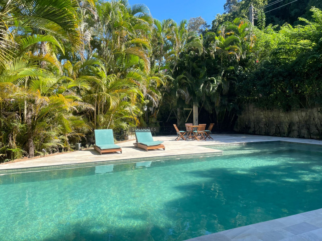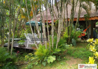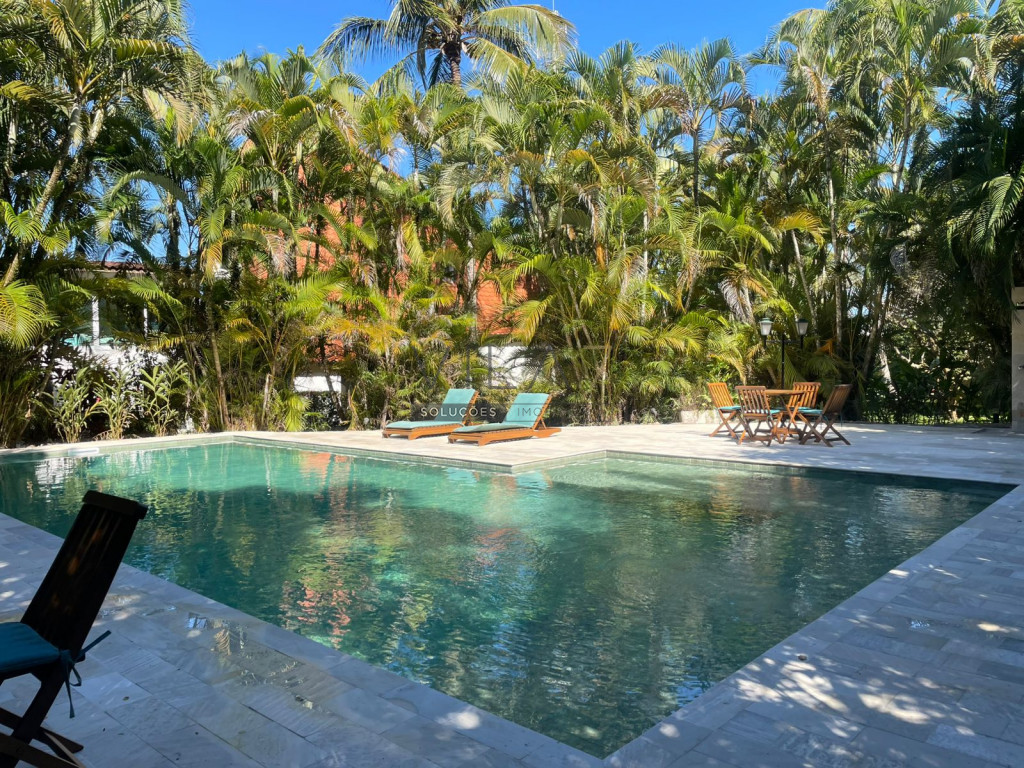 Temos 4 suítes mais 3 dormitórios servidos por 2 banheiros, escritório, 3 salas, de visita, de TV e de jantar, com antisala, cozinha com dispensa, terraço com redes de balanço, deck de madeira na frente com mesa de Jardim com 5 cadeiras e 2 espreguiçadeiras. Temos ainda uma área de churrasqueira da casa, saindo da porta da sala de jantar, com 3 mesas de 4 cadeiras e geladeira, e churrasqueira de concreto.