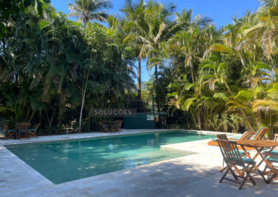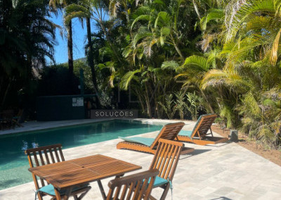 A piscina fica a uma distância de 15 metros da casas, o que gera conforto para os usuários da casa e da piscina.