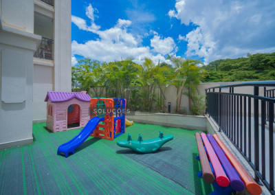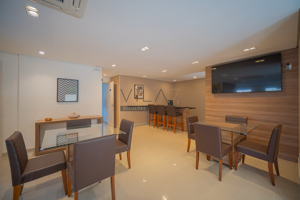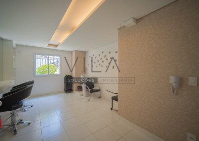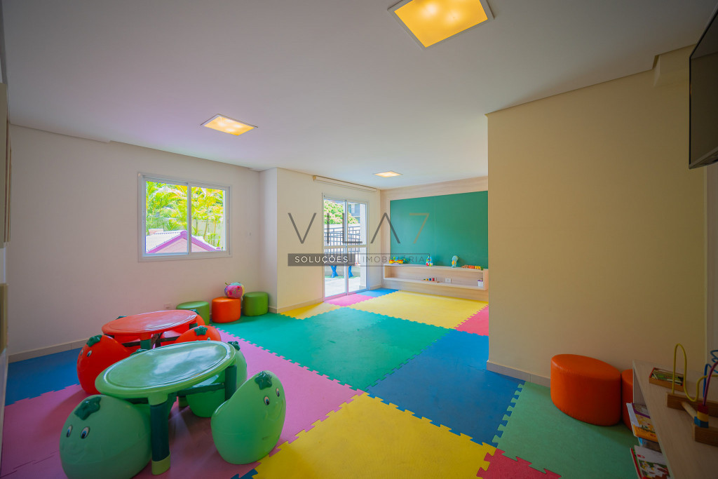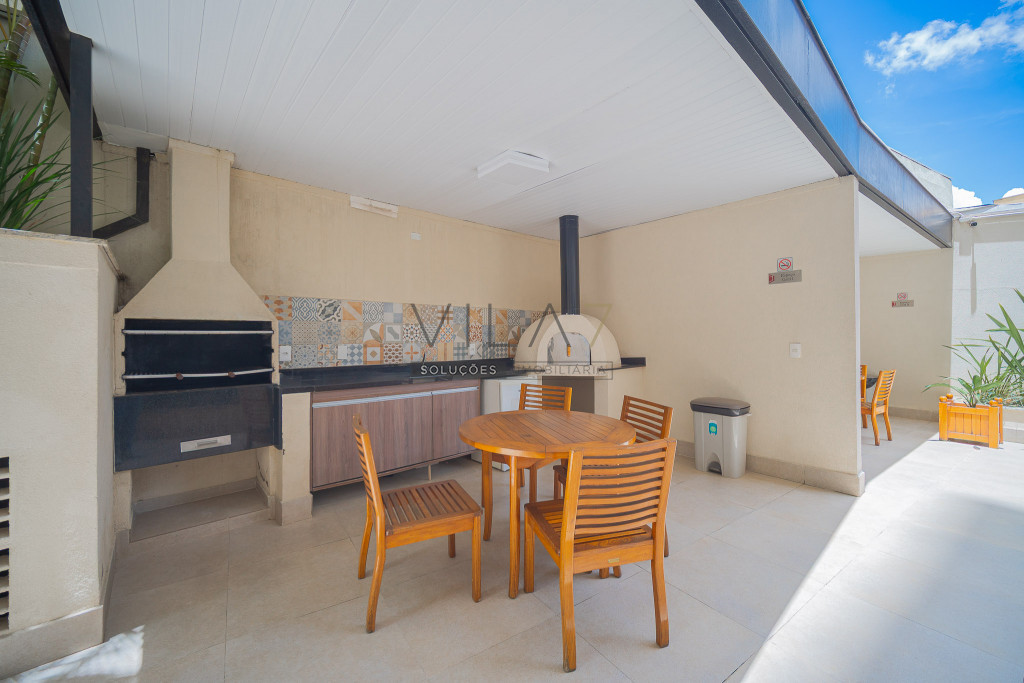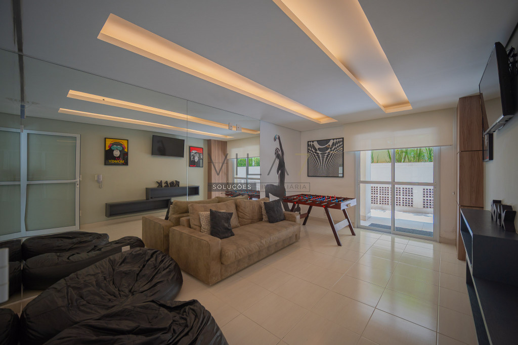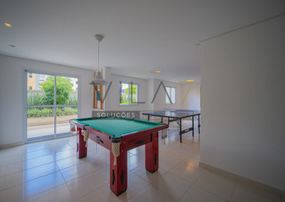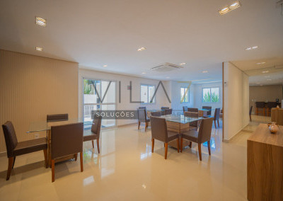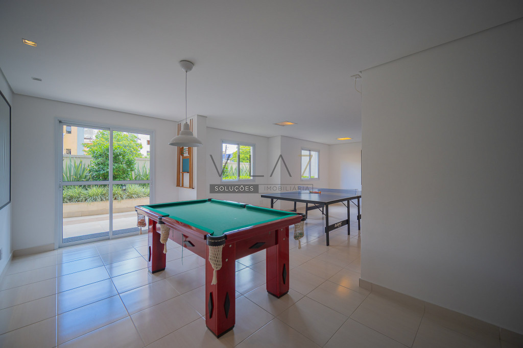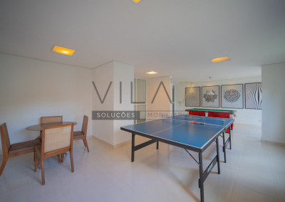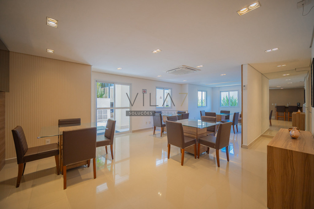O condomínio oferece estrutura completa de lazer e segurança, com portaria 24 horas, elevador, academia, piscina, salão de festas, churrasqueira, playground, sauna e gás encanado.