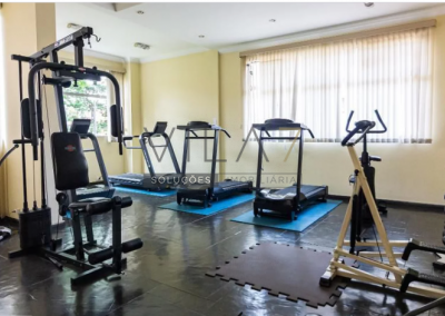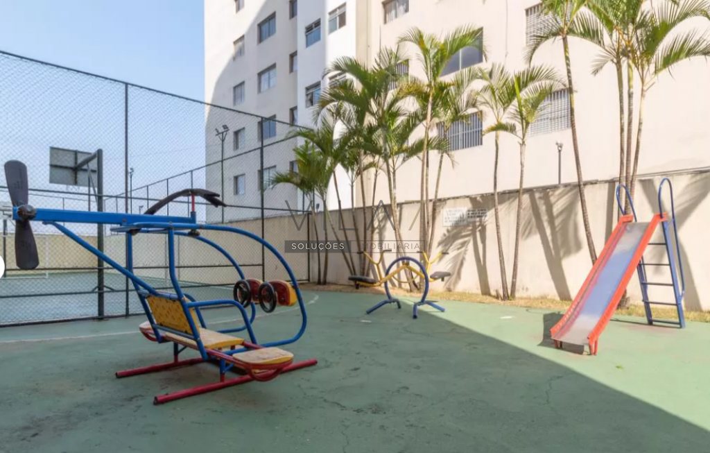 Condomínio possui, academia, salão de festas, churrasqueira, playground, quadra.