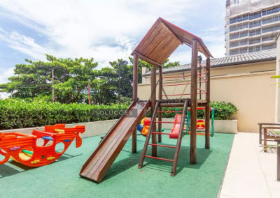 - Lazer completo: Salão de festas com churrasqueira e forno de pizza, brinquedoteca, playground, quadra, piscina externa, sala de ginástica, mercadinho 24 horas, portaria física 24 horas.