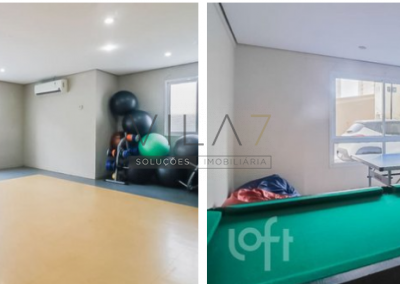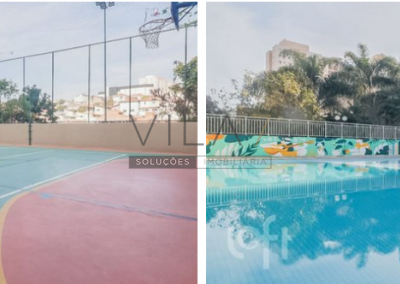 Condomínio com lazer completo: Piscina, salão de festas, salão jogos, academia, sala de ginástica, mercadinho, playground, brinquedoteca, portaria física 24 horas, segurança externa.