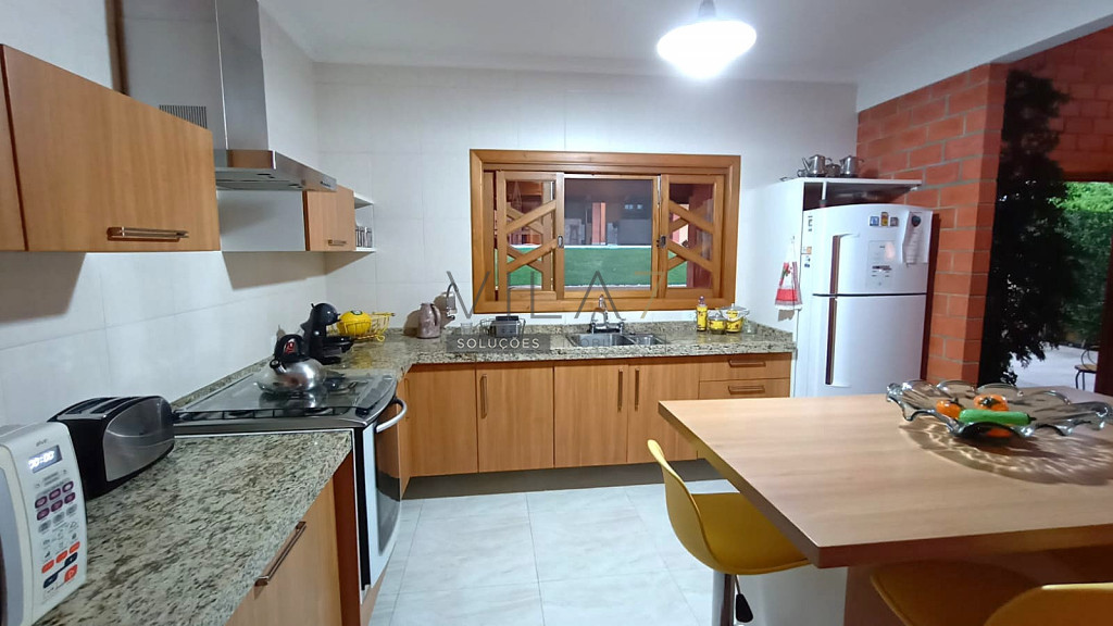 - Ambientes Sociais: Hall de entrada elegante, sala de jantar e uma sala de televisão acolhedora com lareira, perfeita para o clima da região.
