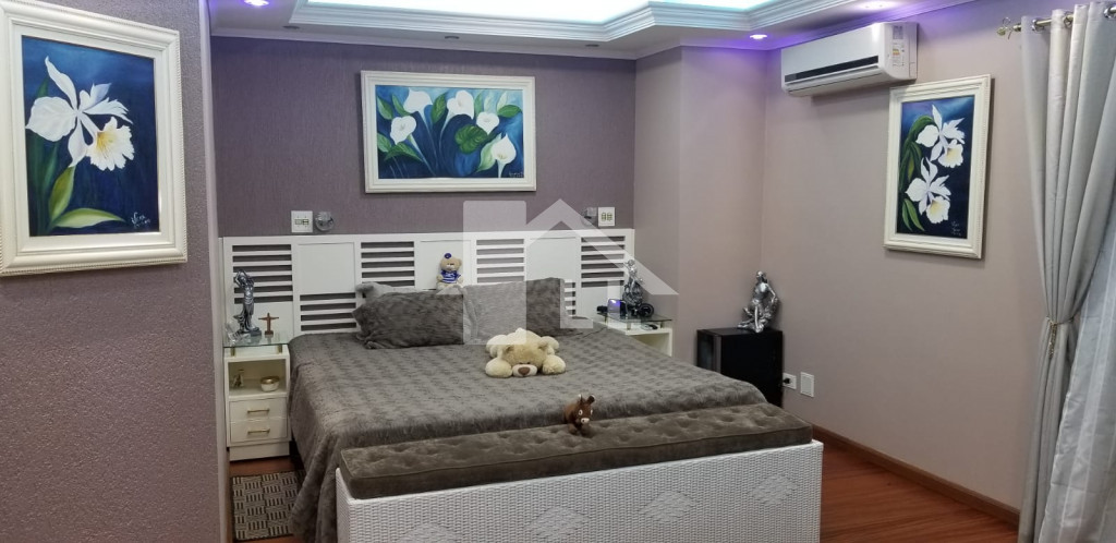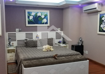 Todo o imóvel com sanca e iluminação de led e lustres de cristal. Suítes superiores com sacada. Ar condicionado. Portão eletrônico.